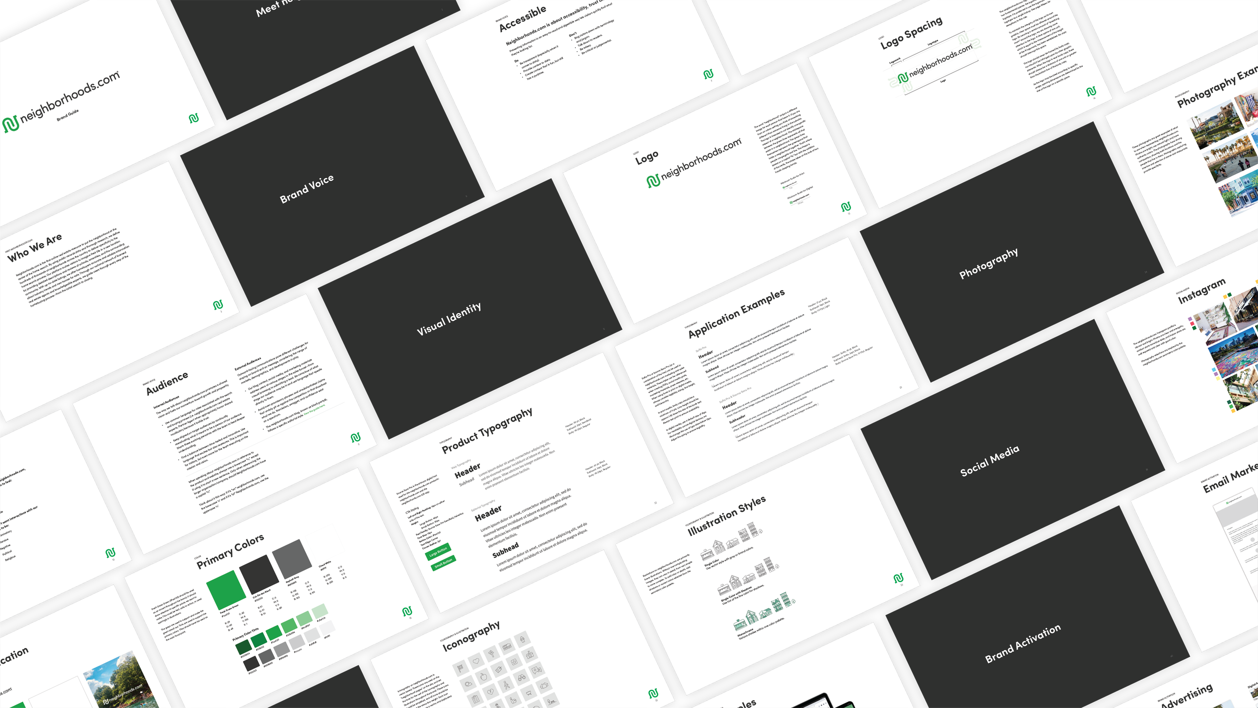 Your house is your home, but you live in your neighborhood. The logo mark represents the intertwining streets of neighborhoods and two hands coming together, as neighbors. As Founding Designer, I created a brand and designed the information architecture and UX for neighborhoods.com in five months.
